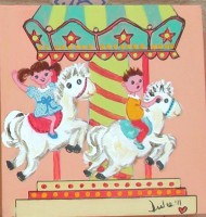 You can see the sizes of the paintings on the PHOTO GALLERIES on the pages: Dulce's Kids Art and Artwork. On the upper part of the Gallery on top of each photo you will find the name of the painting and size.